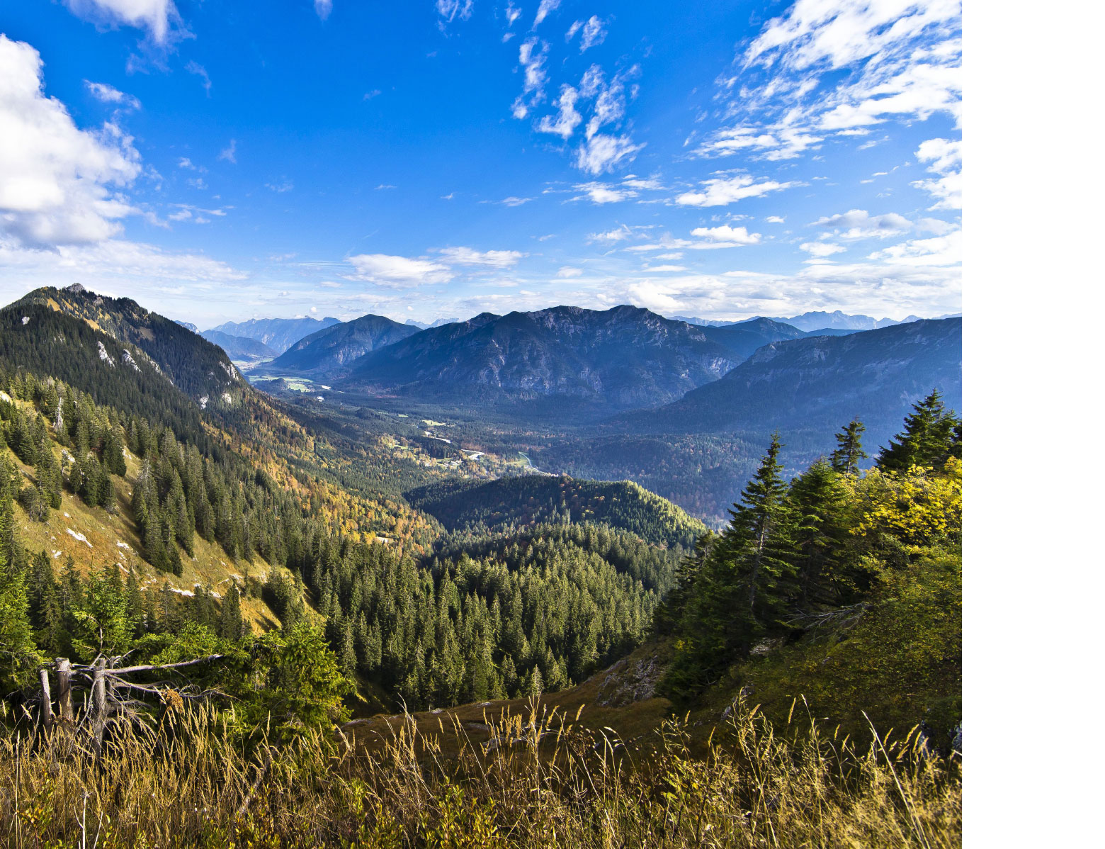 Schloss Linderhof, die Passionsspiele in Oberammergau oder Kloster Ettal sind kulturelle Höhepunkte im Naturpark Ammergauer Alpen. Doch vor allem ist es die Natur, die im jüngsten Naturpark Bayerns fantastische Glanzleistungen vollbracht hat. Mit einer Höhenspanne von 800 bis 2185 Metern birgt er eine außergewöhnlich hohe Gebirgsartenvielfalt.